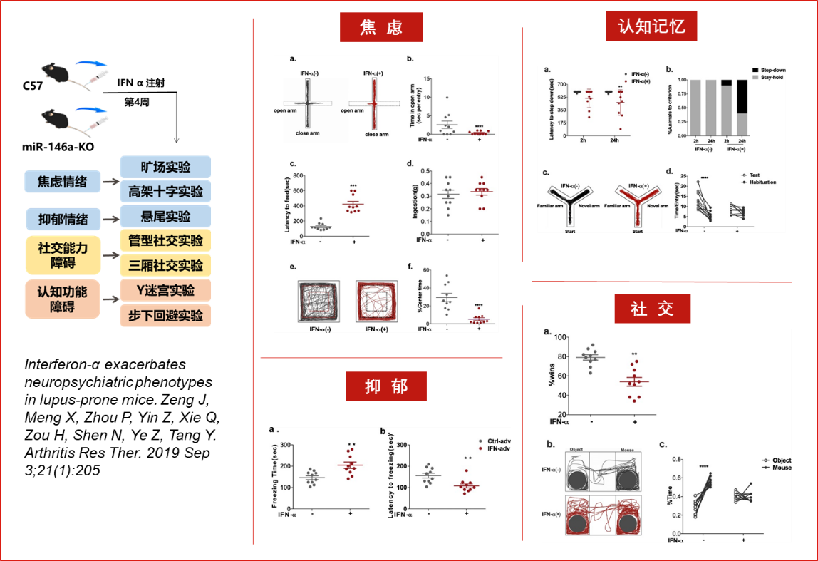 | 情緒 | ? 焦慮:曠場自發(fā)活動、高架十字、O迷宮、黑白箱 ? 抑郁:強迫游泳、懸尾、糖水消耗 |