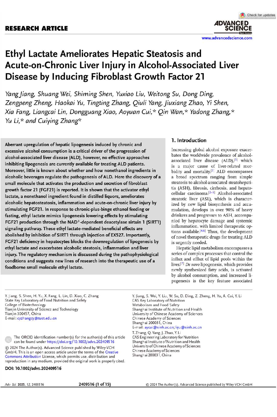 ????MASLD是以代謝功能障礙為根源的全球性肝病,可進(jìn)展為代謝功能障礙相關(guān)脂肪性肝炎(MASH),后者可引發(fā)肝纖維化、肝硬化。目前的治療手段十分有限,揭示MASLD進(jìn)展新機(jī)制對疾病診治及功能食品開發(fā)具有重要意義。