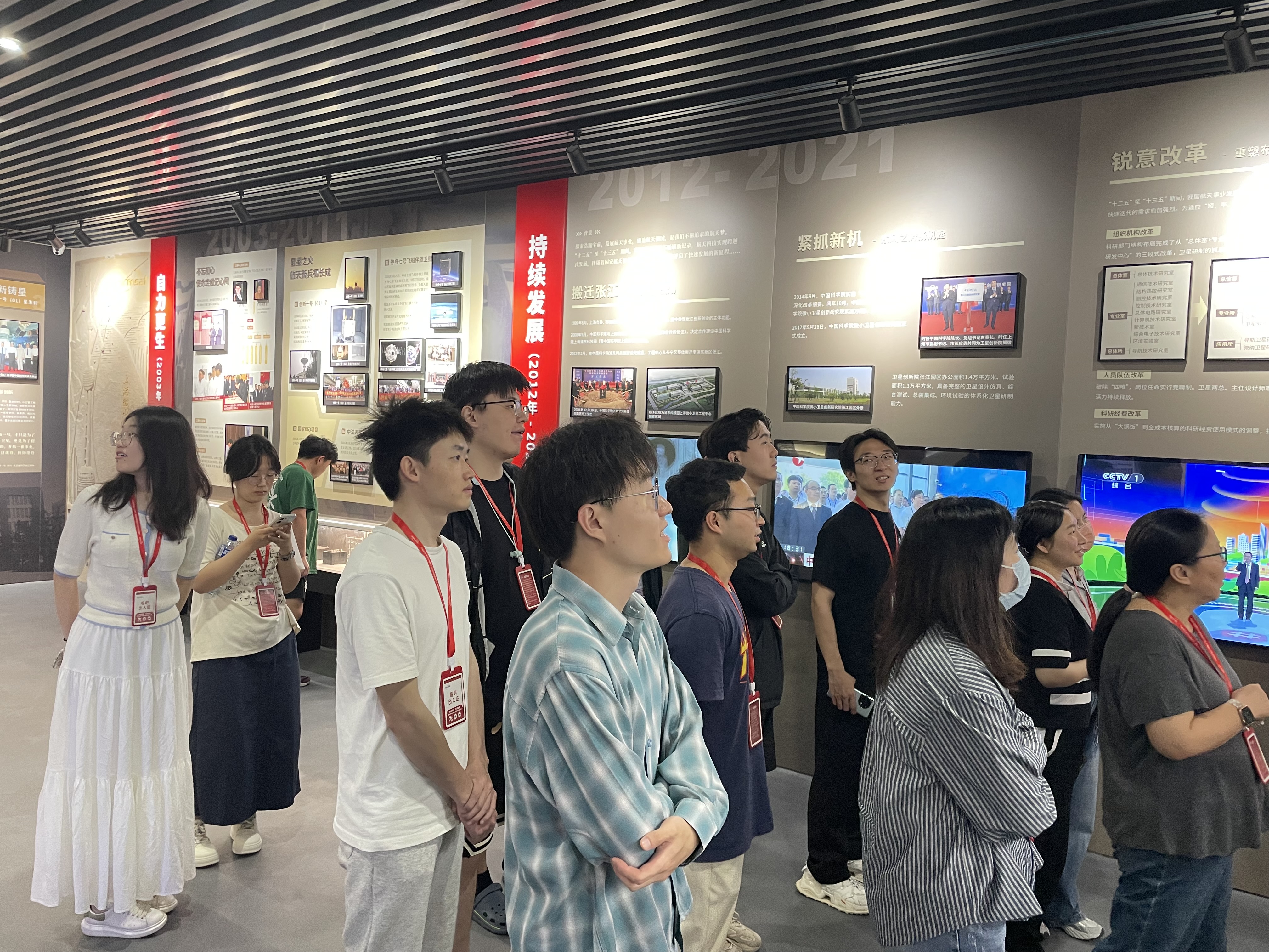師生們首先參觀了衛(wèi)星創(chuàng)新院航天衛(wèi)星科普教育基地(院史館),通過圖文展板、衛(wèi)星模型和發(fā)射模擬視頻等形式,系統(tǒng)地了解了研究院20年來(lái)的發(fā)展歷程及在北斗導(dǎo)航、量子通信、暗物質(zhì)探測(cè)等領(lǐng)域取得的代表性科研成果。隨后,師生們進(jìn)入衛(wèi)星研發(fā)總裝廠房,近距離接觸到包括“天宮二號(hào)”伴星、“悟空號(hào)”等衛(wèi)星模型,深刻體會(huì)到航天工作者們身上的“三無(wú)精神”無(wú)名英雄、無(wú)私奉獻(xiàn)、無(wú)上光榮家國(guó)情懷。通過此次主題教育活動(dòng),師生們不僅收獲了豐富的航天知識(shí),更體會(huì)到了科學(xué)家們“特別能吃苦、特別能戰(zhàn)斗、特別能攻關(guān)、特別能奉獻(xiàn)”的精神。